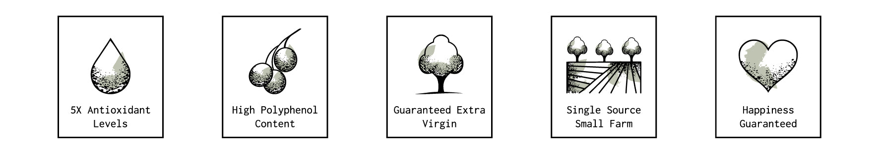 Healthiest Koroneiki Olive Variety – Up To 12lbs Of Olives Are Cold-Pressed To Create Just One Bottle Of Our Heirloom EVOO (highest quality / lowest yielding)